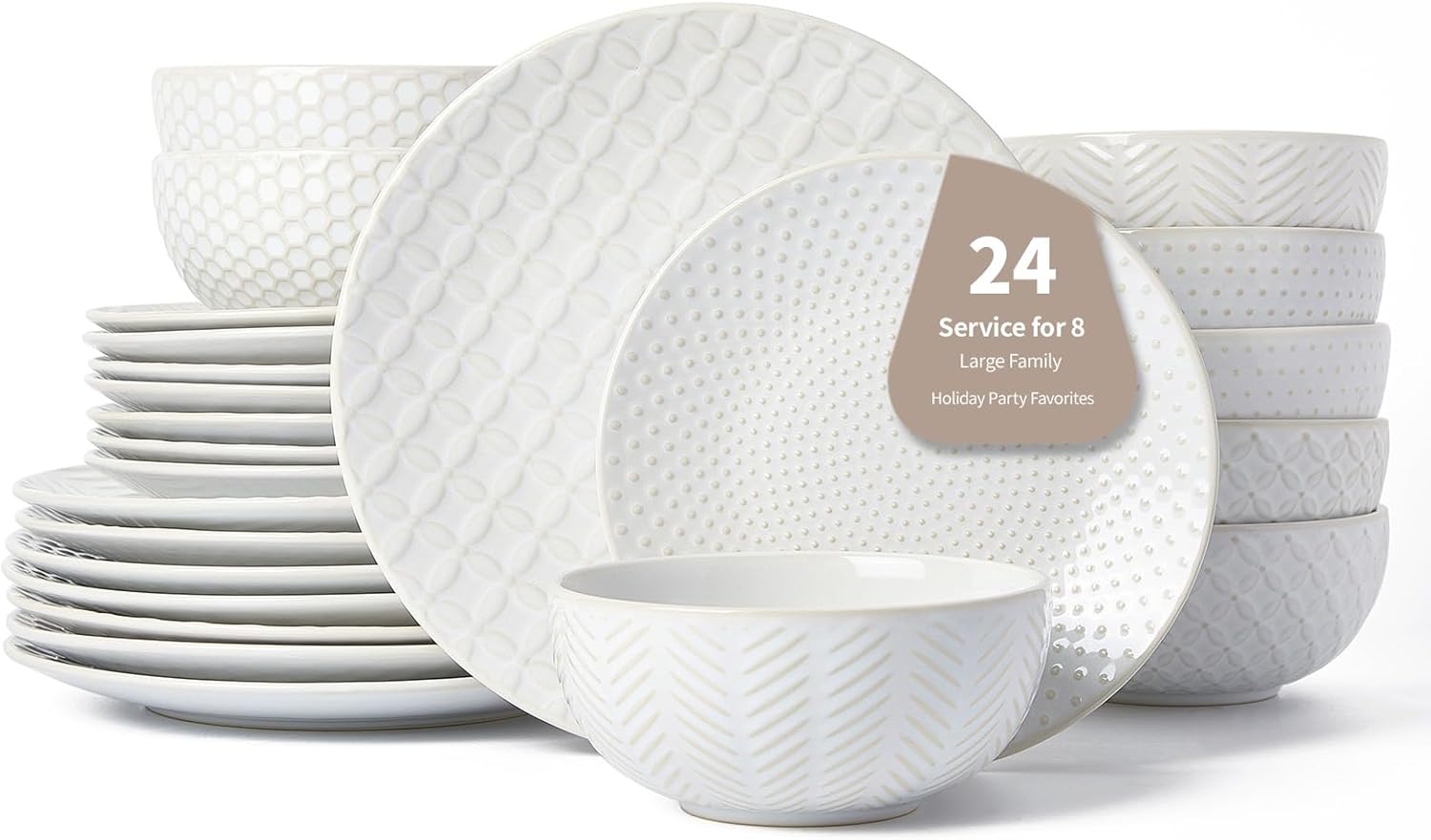 24-Piece Stoneware Dinnerware Set for 8, Microwave & Dishwasher Safe