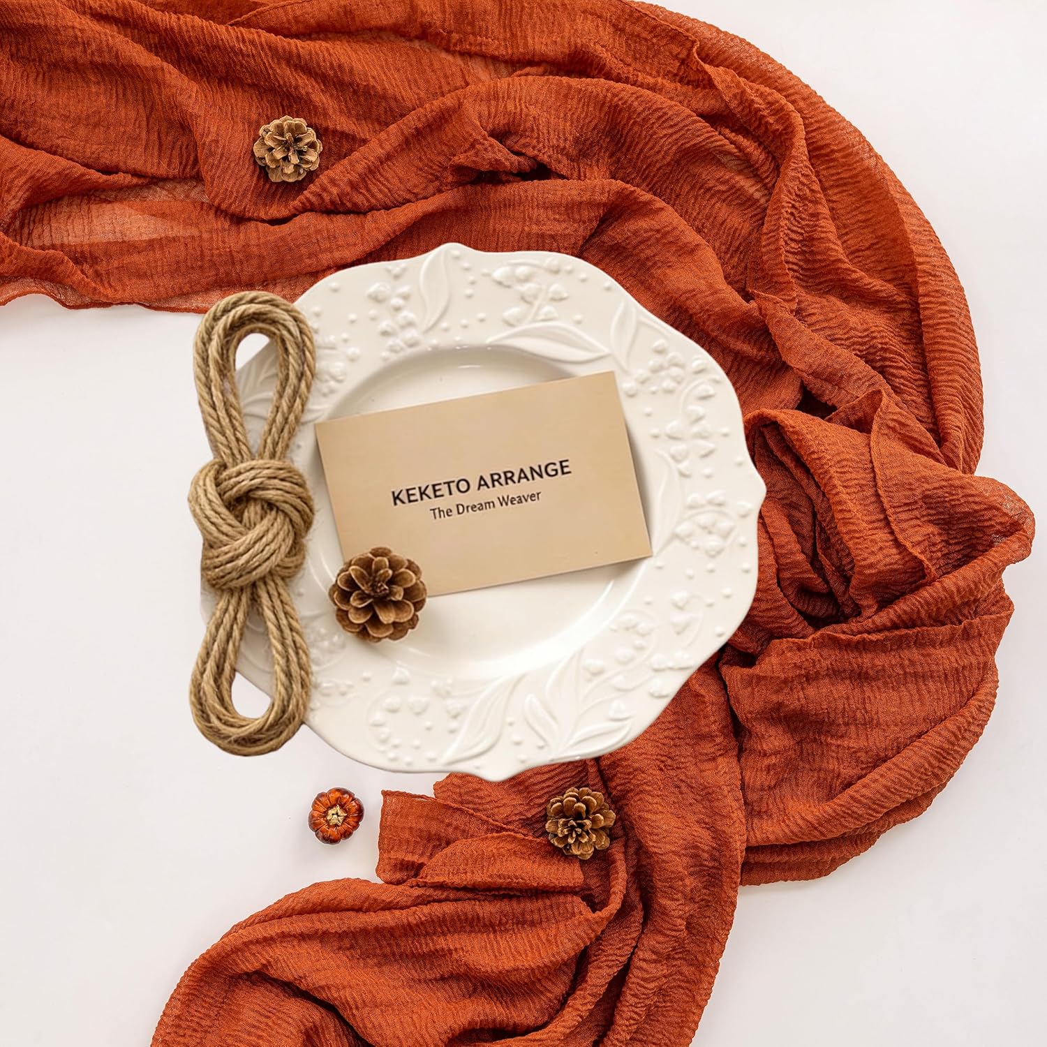 • 【Package Includes】1 Table runner (35 x 120 inches) and 1 sisal rope (approx. 55 inches), all neatly packed in a transparent plastic bag. This versatile runner is designed to fit most table types.