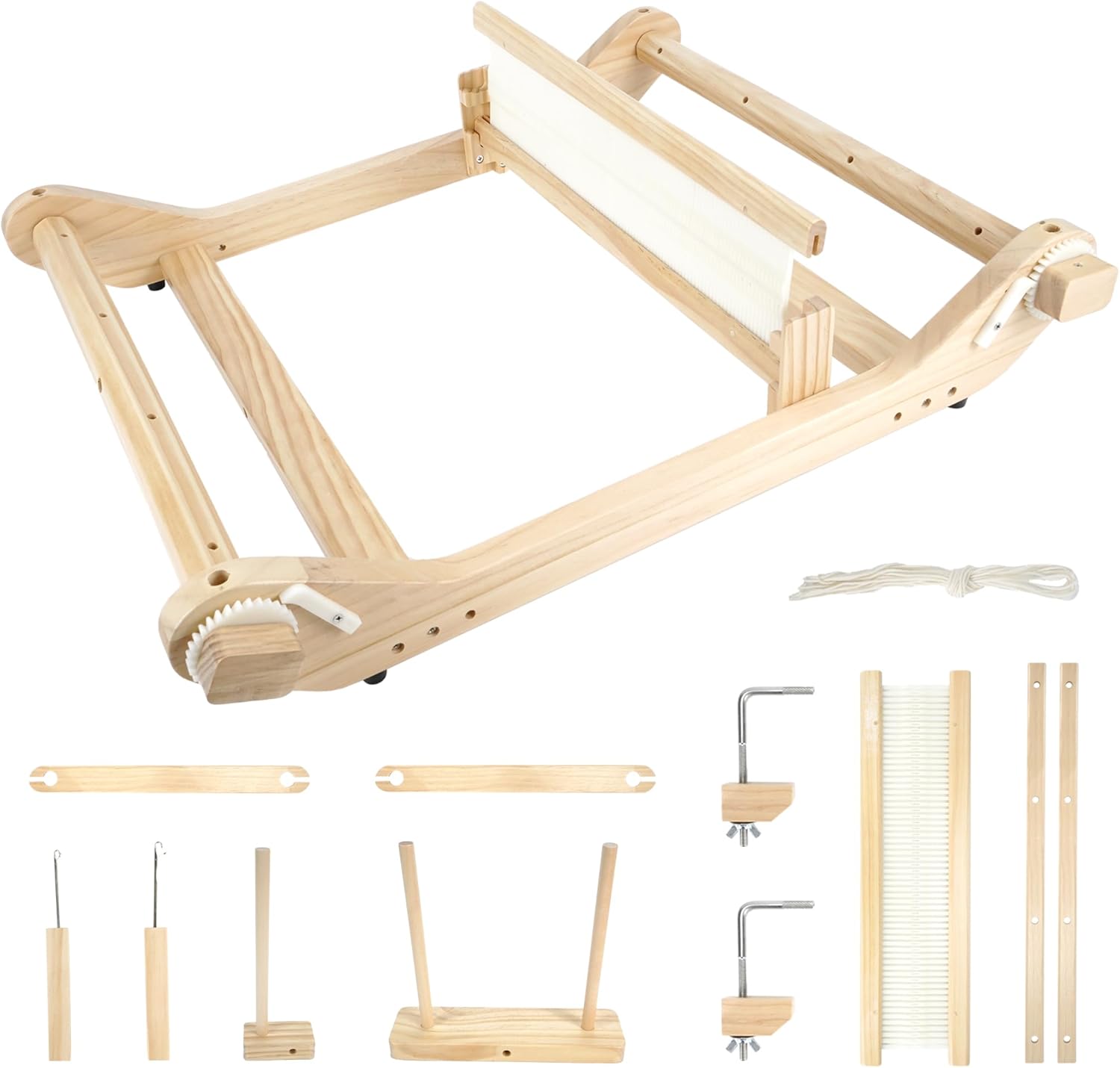 • Everything you need, right away — Comes with a loom frame, strings, sticks, a shuttle, heddle hooks, clamps, a peg, a yarn stand, and warp sticks — essentially a full starter kit that skips the “sold separately” frustration. Just add your yarn of choice and you’re ready to go.