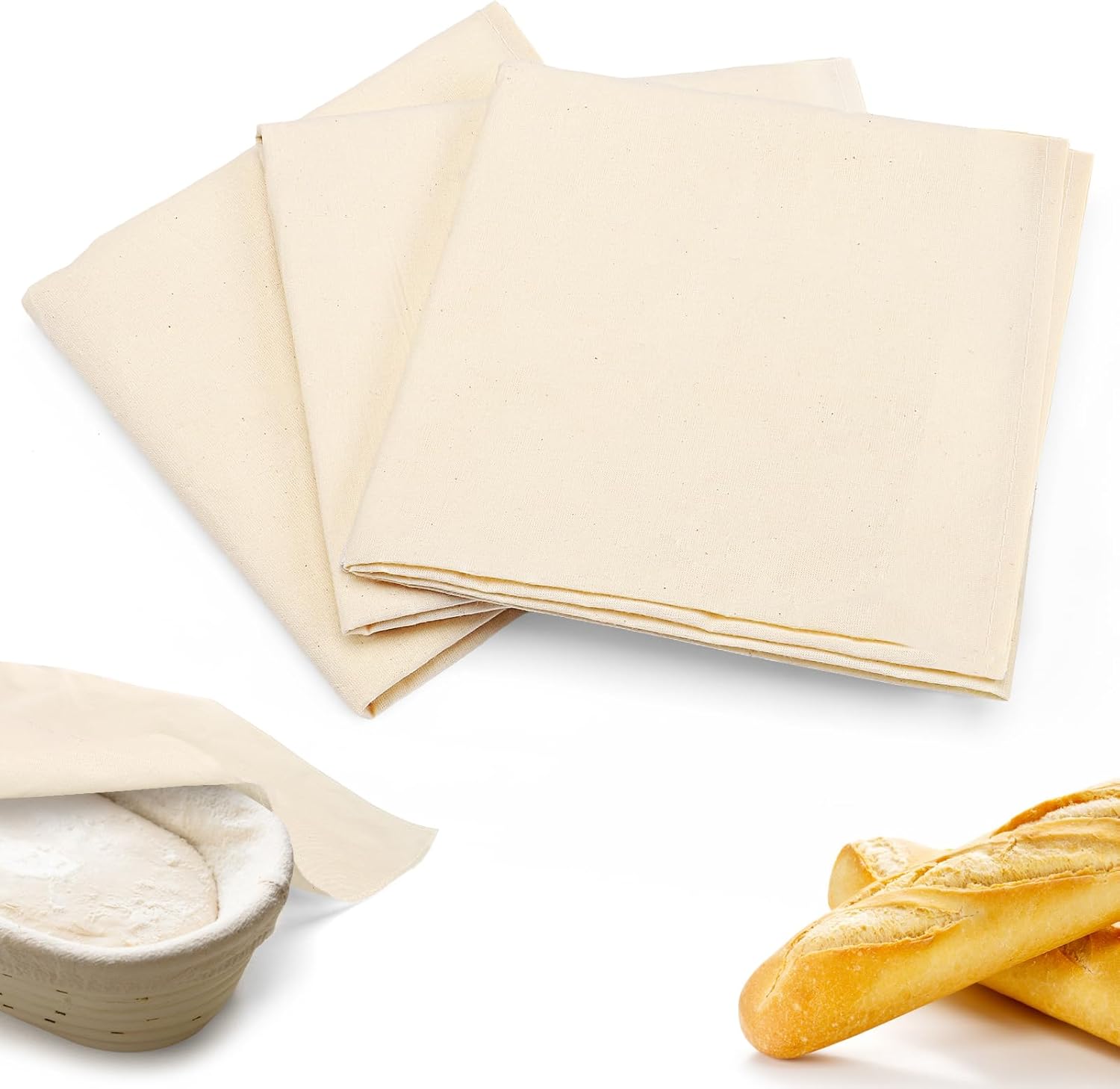 Large & Versatile: Set of 3 towels, each 28″ x 28″, perfect for shaping and covering dough.
