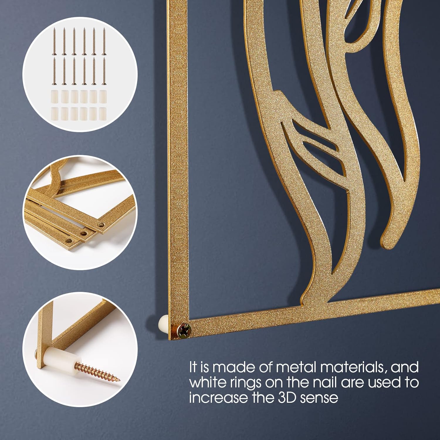 - 👑【Product Attributes】 This gold wall decor is 15.35 inches high and 11 inches wide. In addition, it is equipped with 16 nails. There 3 arts are a set, and each set is individually packaged in a case