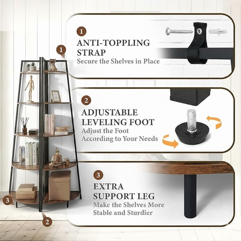 Sturdy Construction: Built with matte black iron frames and P2-grade engineered wood, this shelf offers long-lasting durability. The sturdy metal frame and added bottom support leg ensure excellent stability for heavy use.