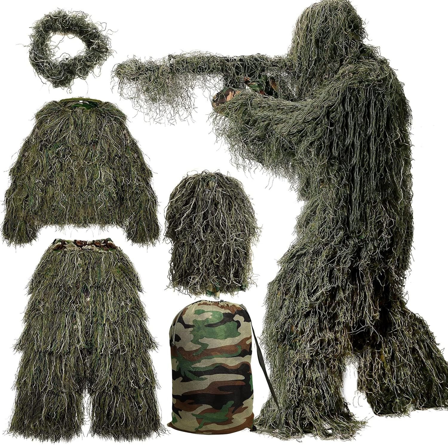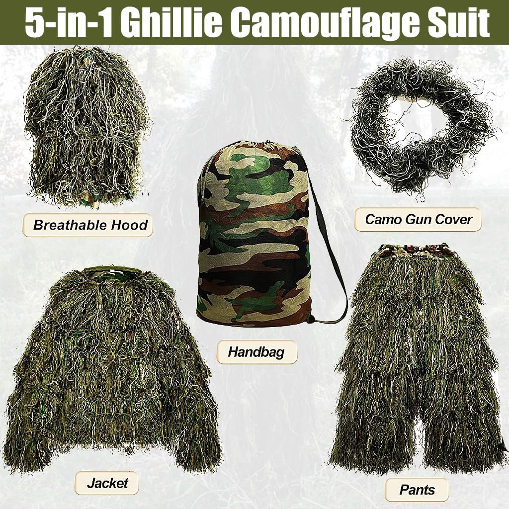 - Complete 5-in-1 Set: Includes hood, jacket, pants, gun wrap, carry bag.