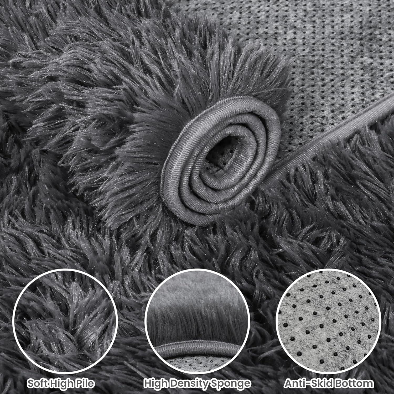 - [Memory Foam Comfort & Lasting Softness] Sink into luxurious softness with the fuzzy bedroom rug. Built with a 0.4-inch memory foam layer, it cushions every step, relieving foot fatigue and reducing floor noise for a quieter, more comfortable space. On top, ultra-soft high-density fibers provide a pillowy feel that stays fluffy and full, even with daily use. Unlike ordinary rugs, this design resists matting and keeps its plush texture over time.