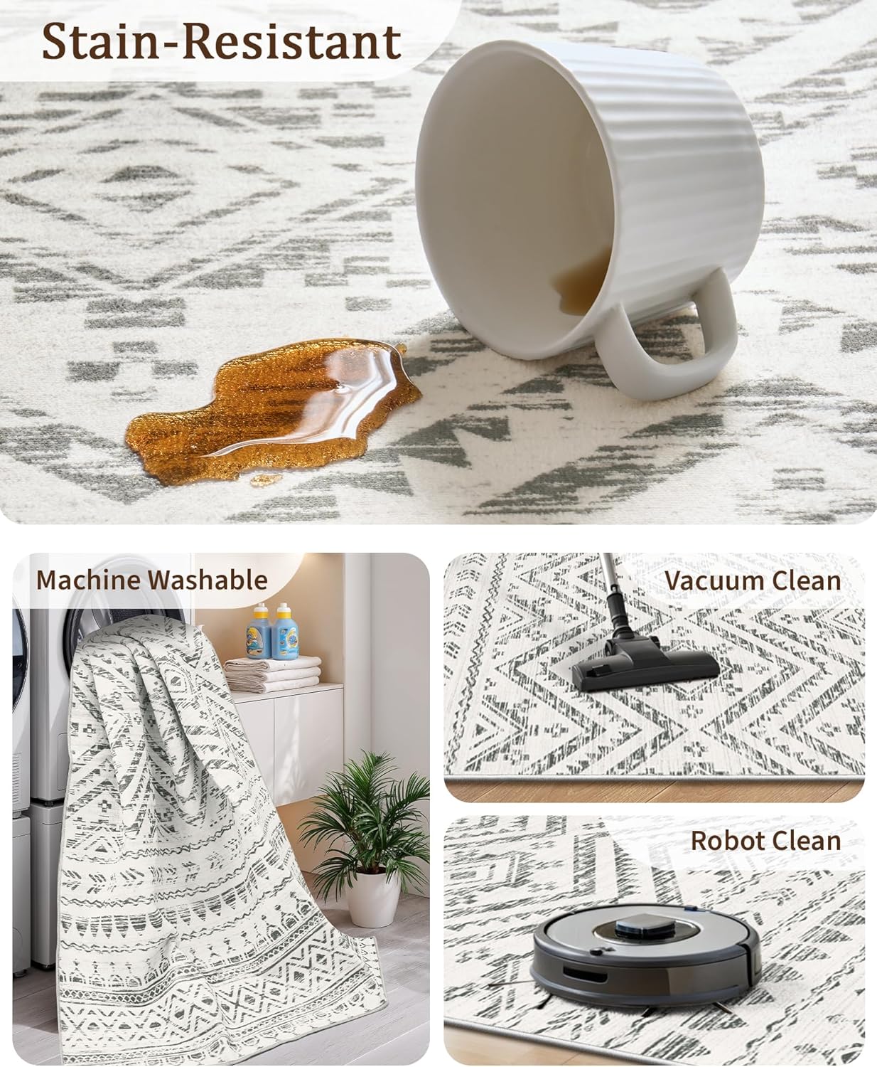 • Machine-Washable Rug: This slip-resistant carpet only requires regular vacuuming to remove dirt and debris. When a deeper clean is needed, our washable rug is machine washable, making daily maintenance simple and convenient.