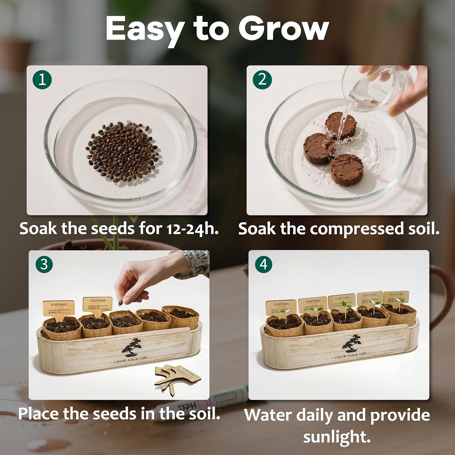 - Beginner-Approved: No Green Thumb Needed : Engineered for first-time success! Our seeds boast a high germination rate and come with pre-fertilized soil for strong starts. Follow the clear, visual guide to easily expand soil, plant, and nurture your bonsai—no complex steps or gardening experience required