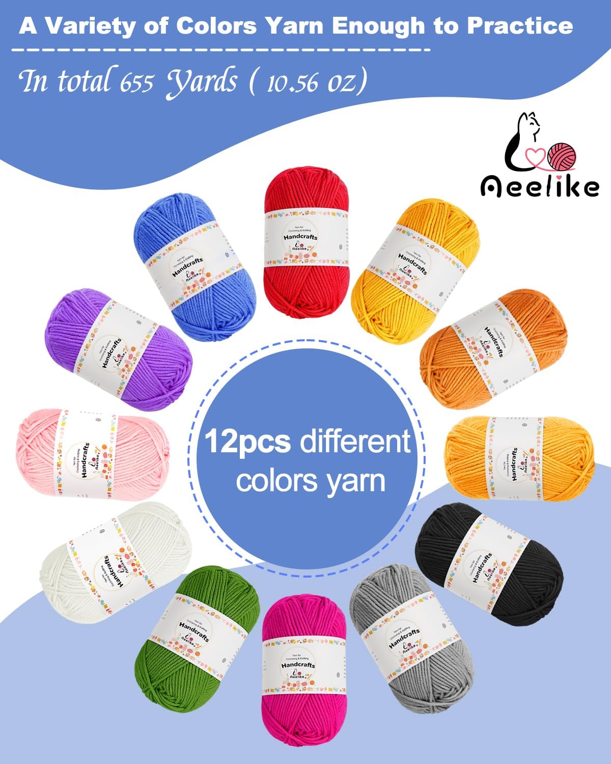 - Vibrant Multicolored Yarn: 12 yarn colors totaling 655 yards, perfect for scarves, blankets, hats, and plushies.