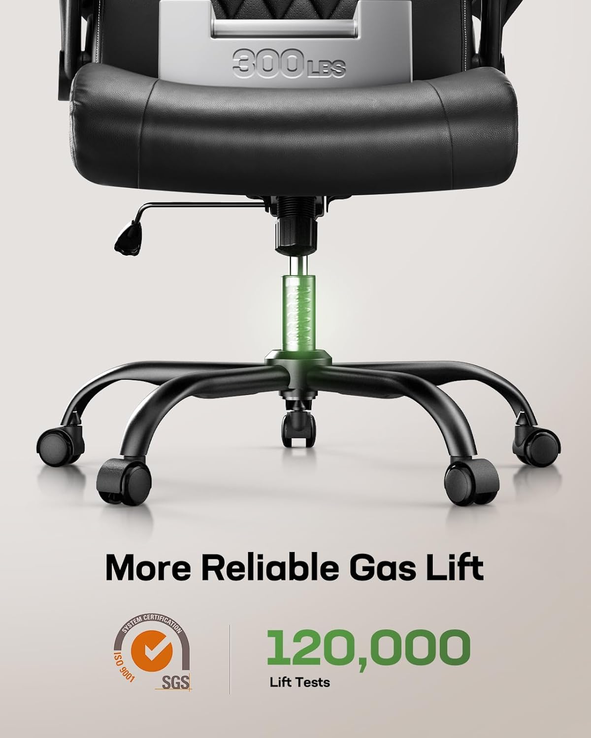 • Built to Last: Engineered with a 27.6″ oversized base and an SGS-certified gas lift, this office desk chair provides maximum stability for up to 300 lbs of weight. The center of the backrest is breathable to help keep you cool and dry with better airflow to your body.