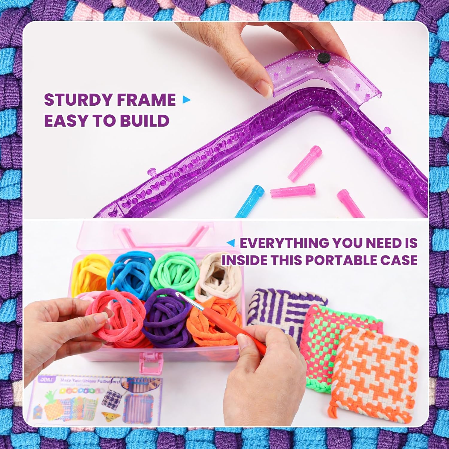 Complete Portable Potholder Weaving Loom Set with Colorful Craft Loops