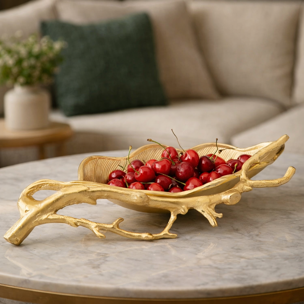 - Elegant Decorative Accent – A candy dish designed with a graceful gold leaf motif, perfect for elevating tabletop presentation.
