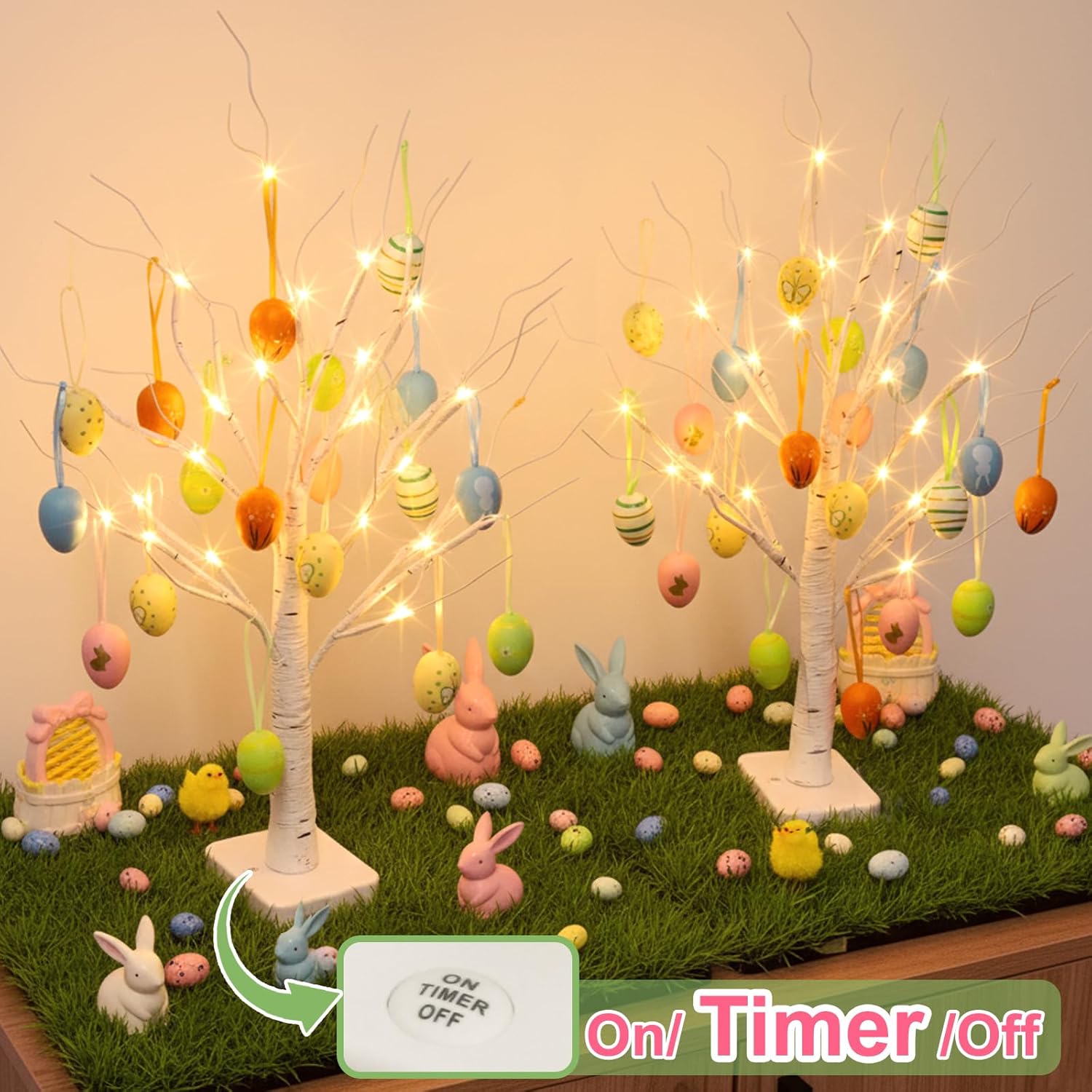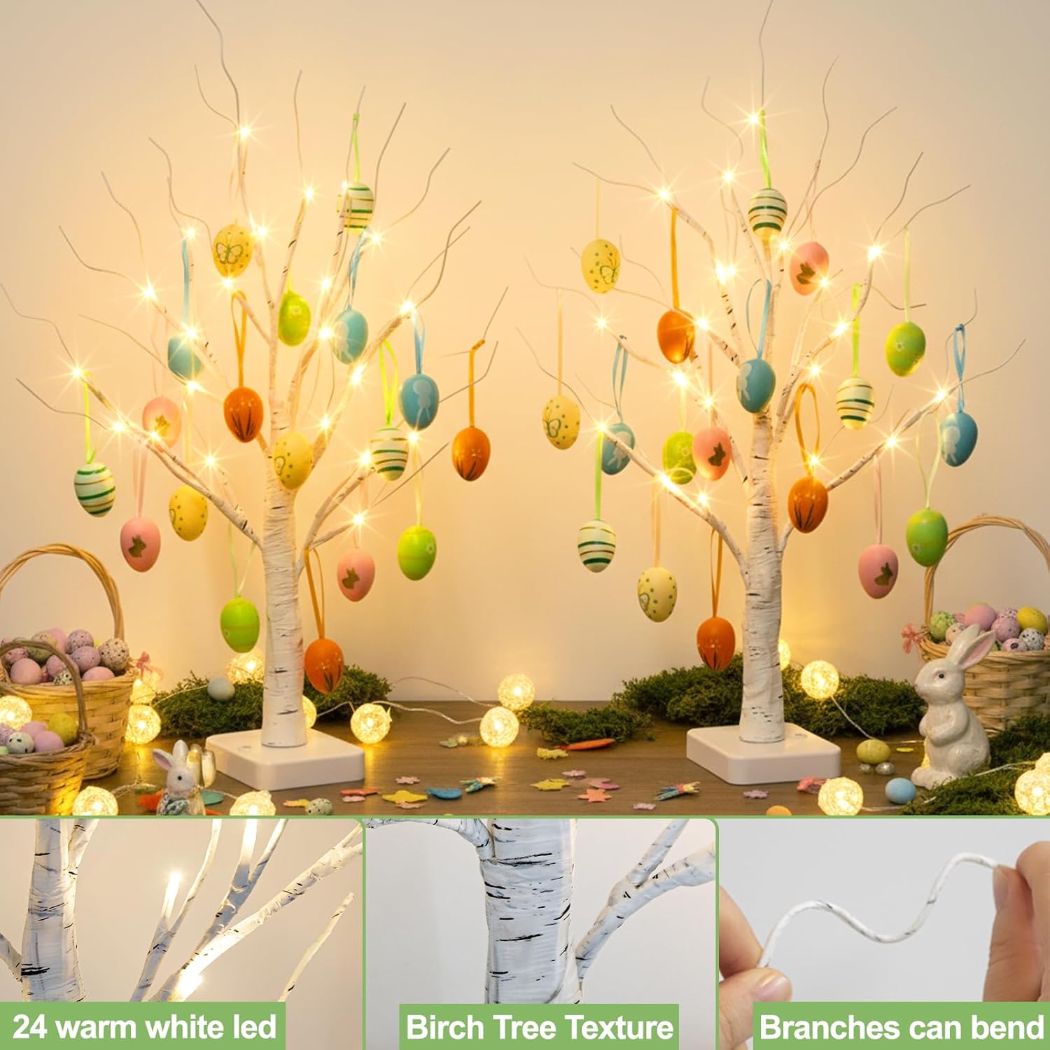 - Festive Easter Decor: 2 pack trees with 36 colorful eggs.