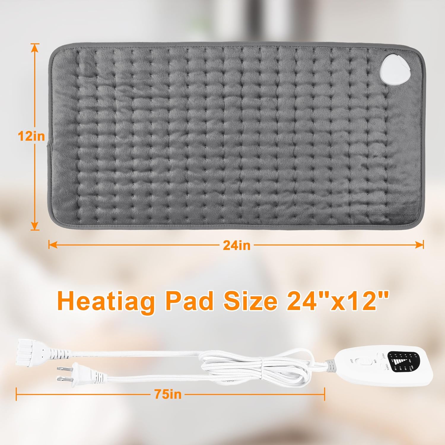 - We heating pad have different sizes for you to choose from, including 12”x24”, 20”x24 ”, 17”x33” and 20”x40”,you can find a heating pad size that is more suitable for you here,say goodbye to a single color tone, our heating pads come in a variety of colors for you to choose from.With 75 inch power cord,you can comfortably lounge on the couch or relax in bed