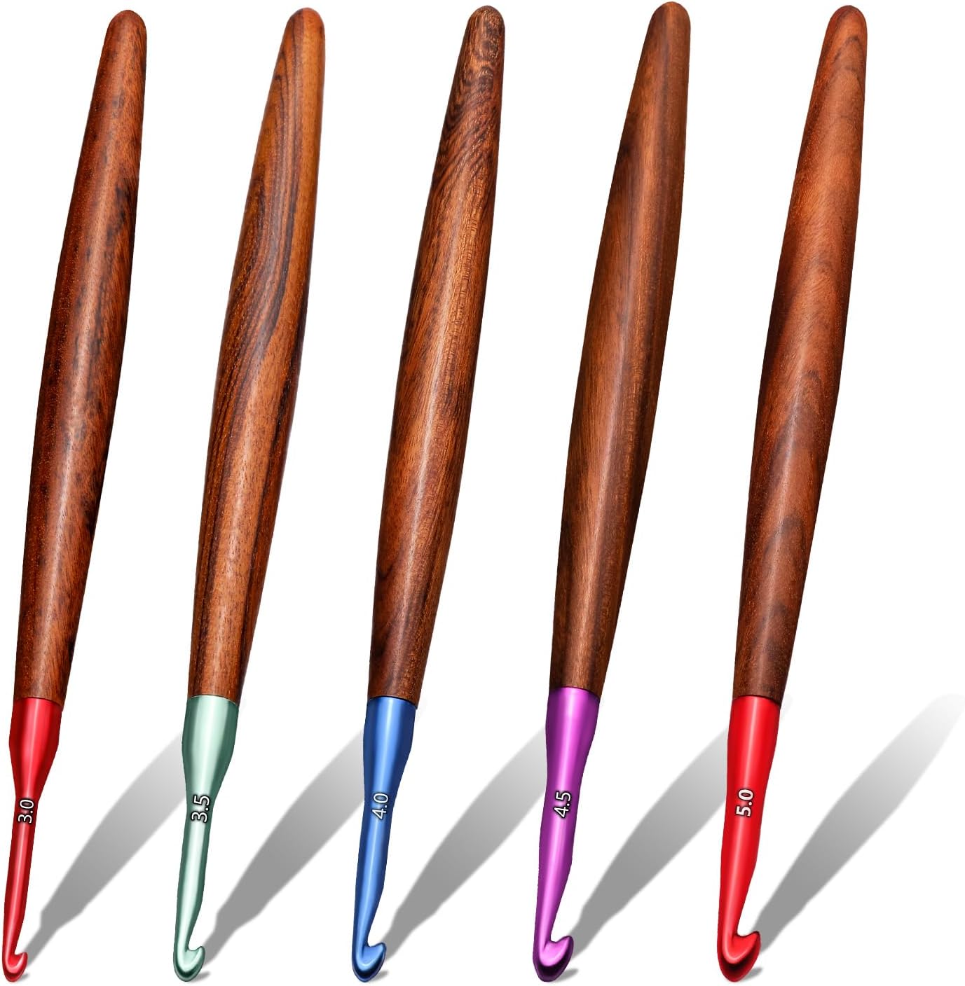 Ergonomic Crochet Hook Set Aluminum Wooden Handles 5 Sizes