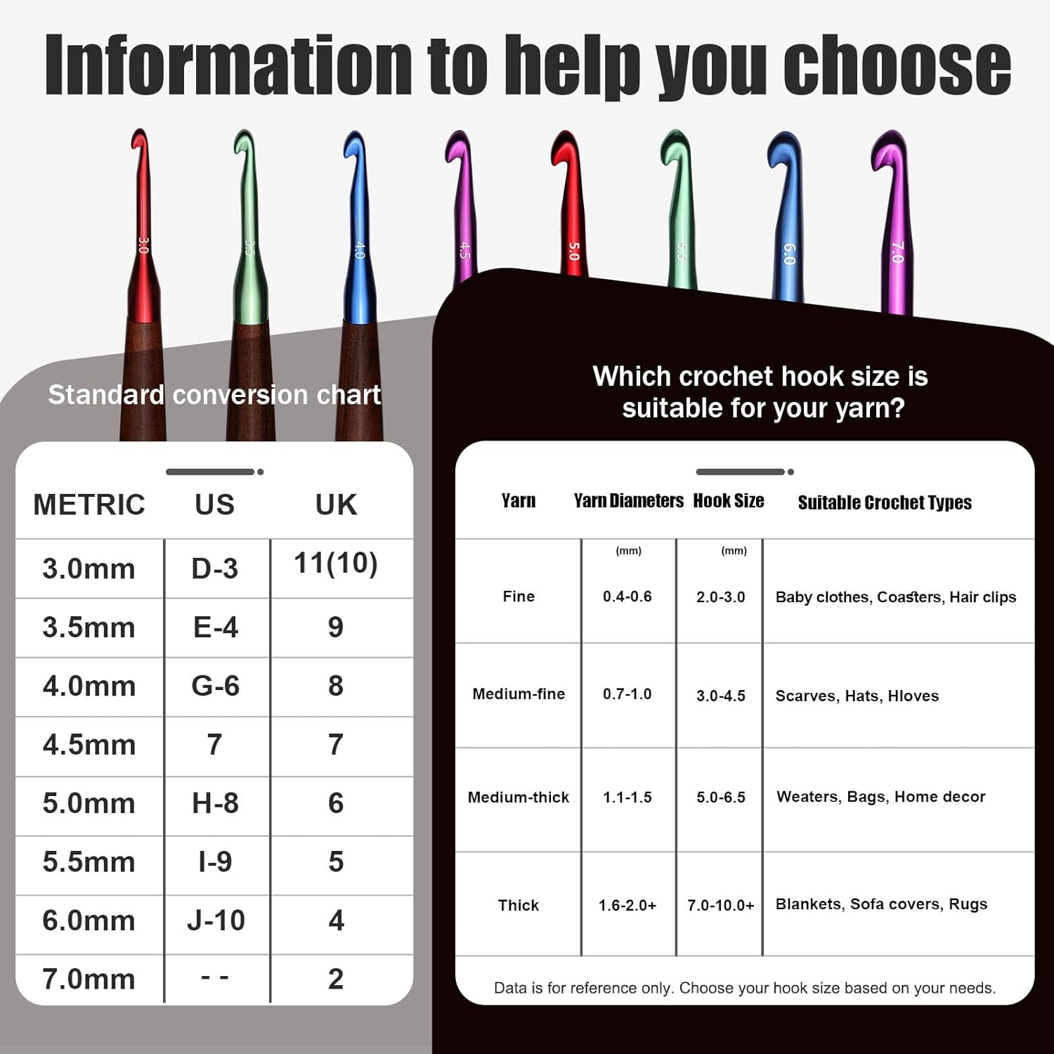 • Multiple Sizes: Includes 3mm, 3.5mm, 4mm, 4.5mm, 5mm hooks.