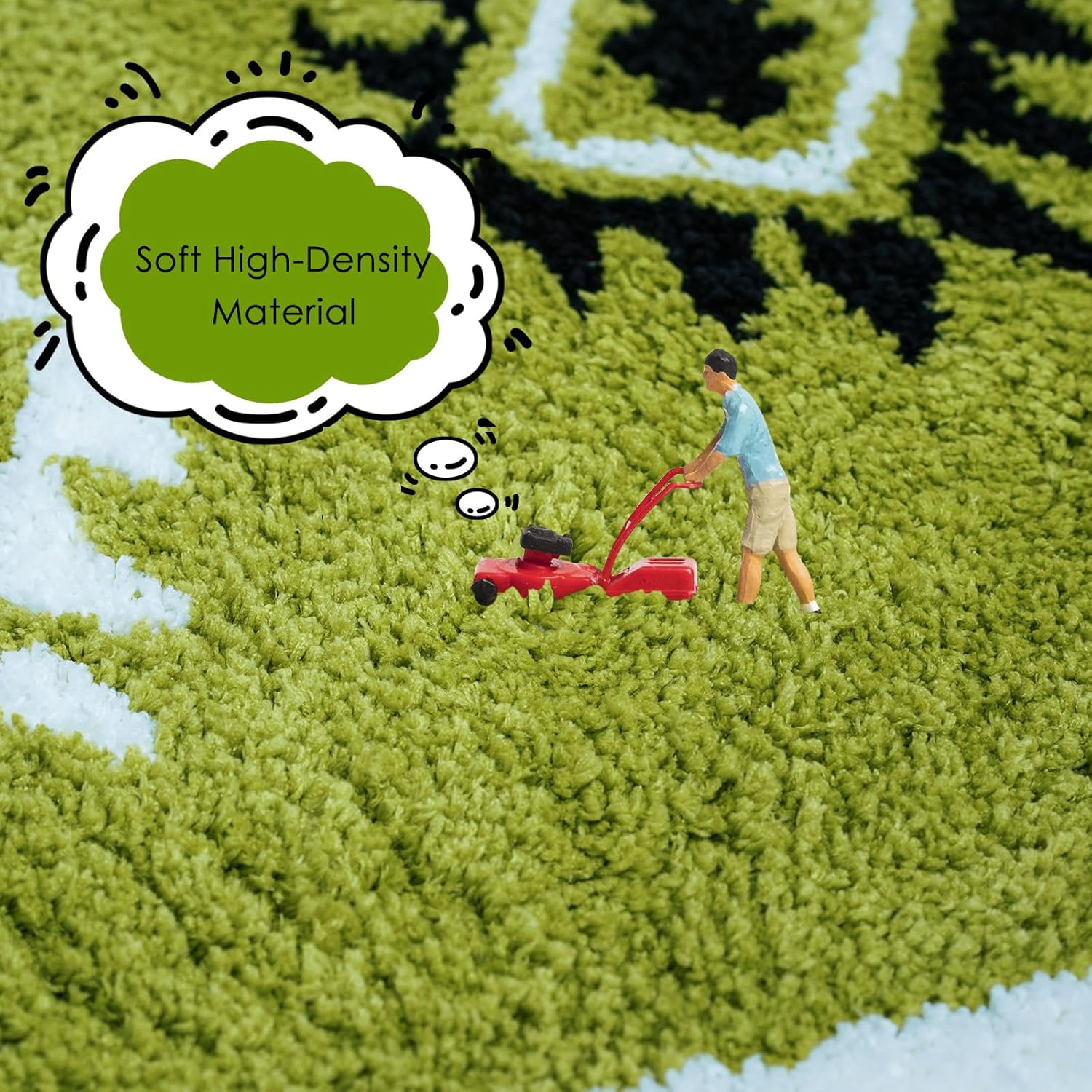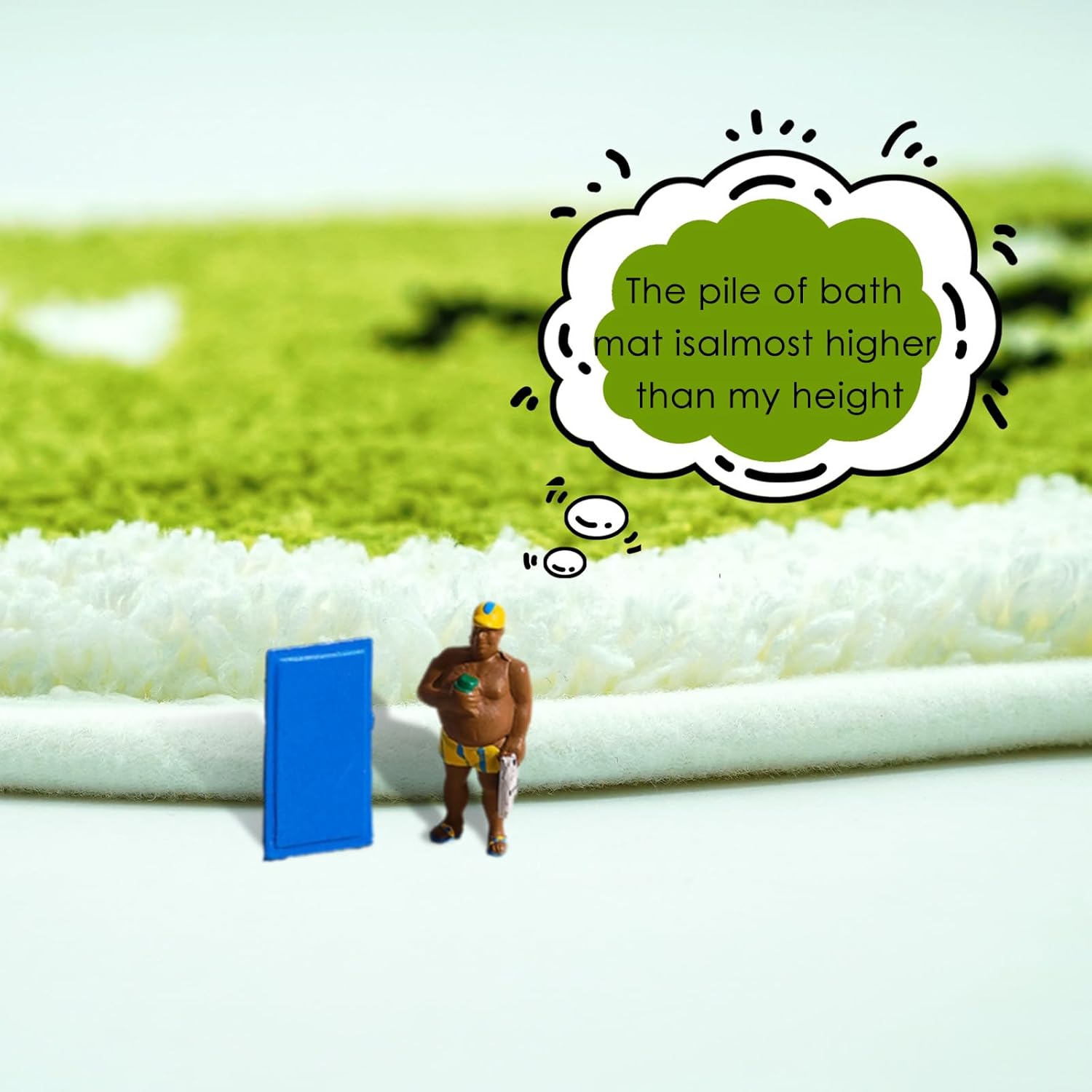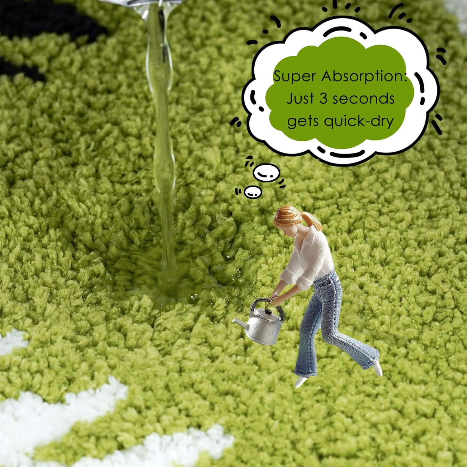 Green Boho Bathroom Rug 24×60” Non-Slip, Washable, Soft Mat