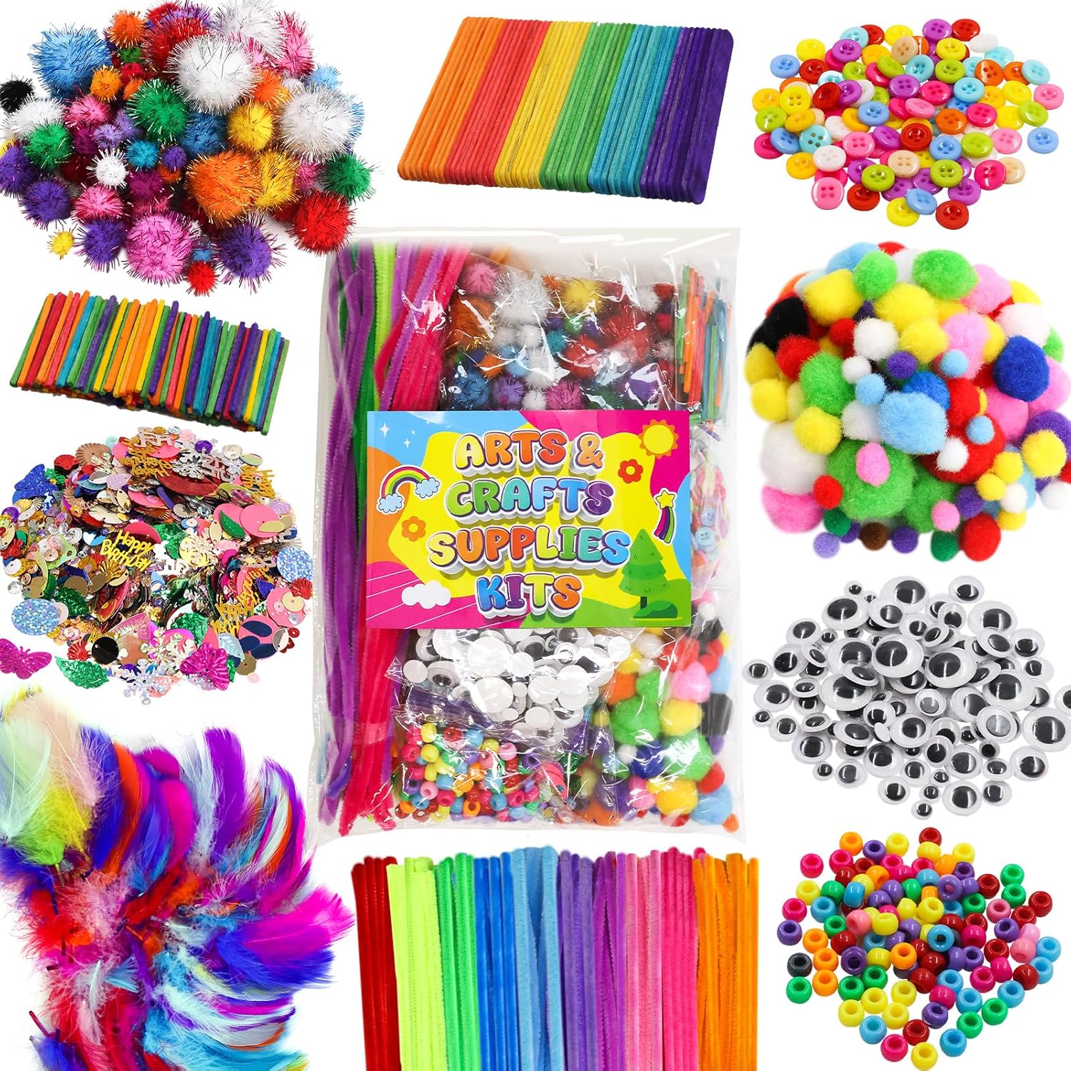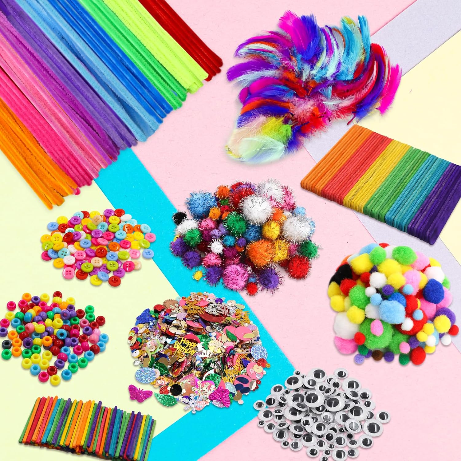 • Package Includes: Craft Kits included pipe cleaners, wooden sticks, buttons, adhesive googly eyes, pompoms, feathers, beads, and sequins