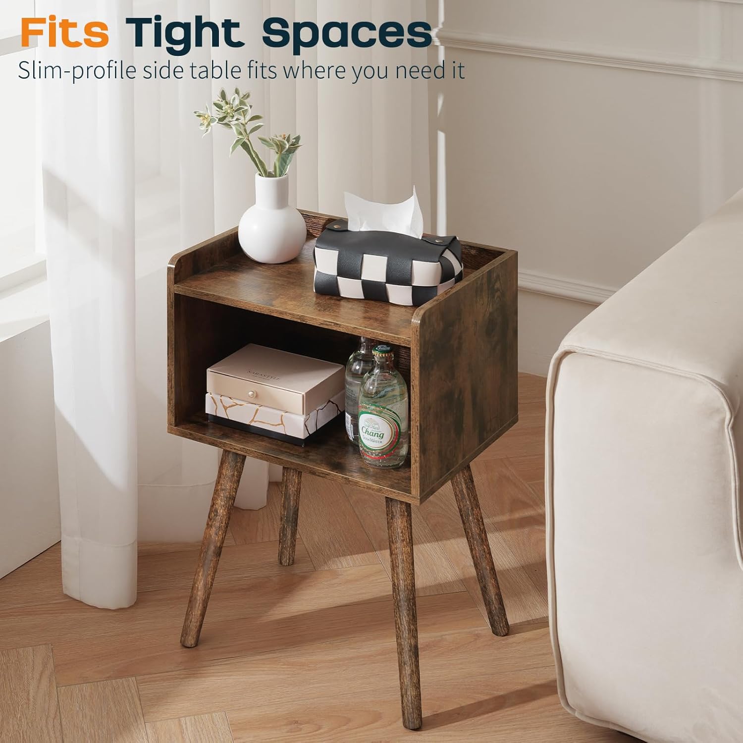 Maximized Space Efficiency: Perfect for small spaces, this compact table fits neatly in corners or beside beds, sofas, or in your study. It offers the ideal storage solution for phones, drinks, snacks, and more without taking up too much space.