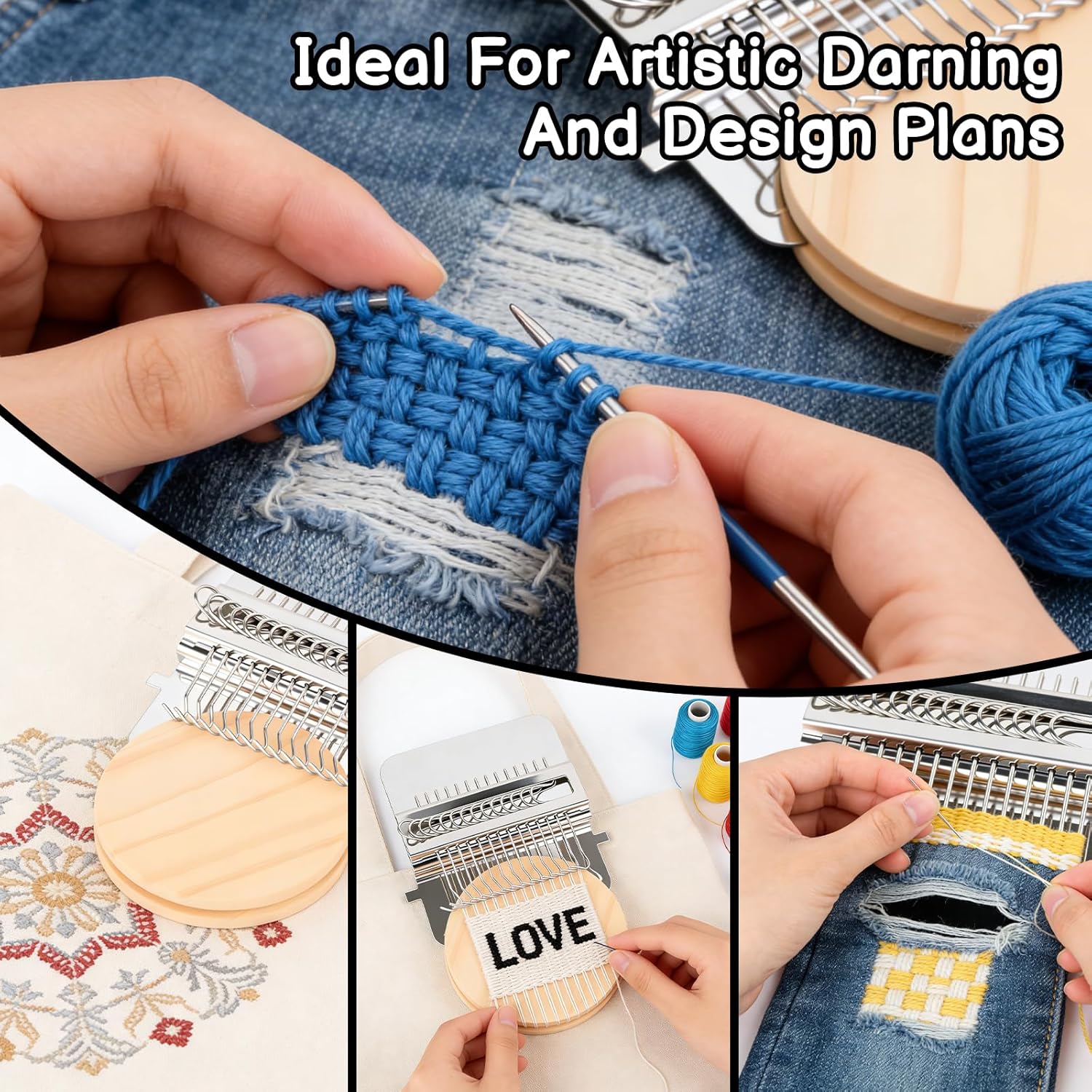 Mini Portable Patch Darning Loom Kit, 14 Hooks, Sewing & Weaving Tool Set for Beginners