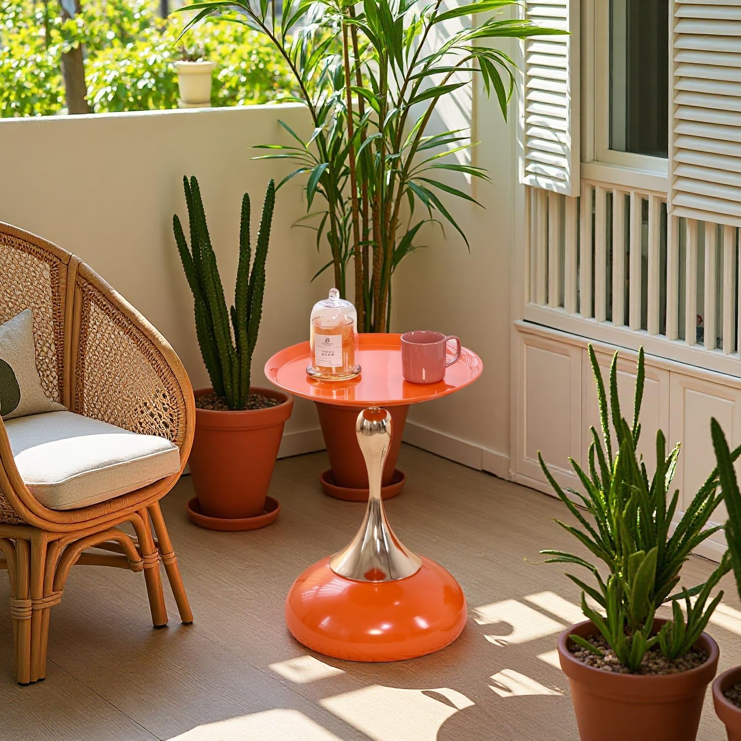 Stylish Hourglass Shape: This eye-catching side table features a modern hourglass design, perfect for elevating living rooms, cafes, or bedrooms.