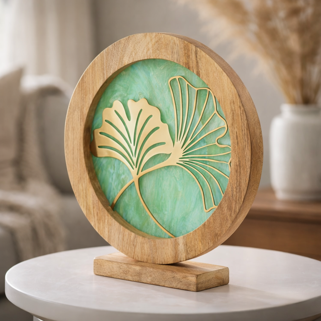 - Natural Wood Stand – Supported by a handcrafted mango wood base, blending organic warmth with decorative elegance.
