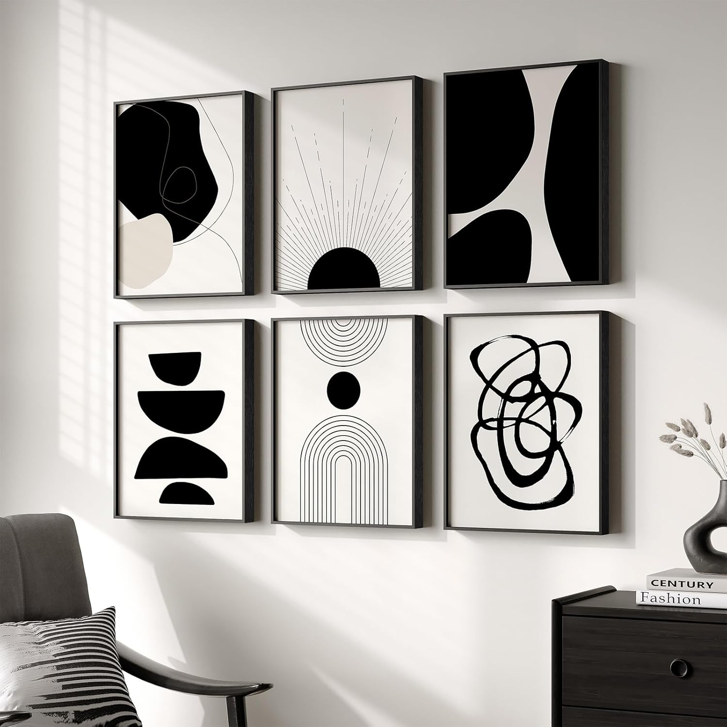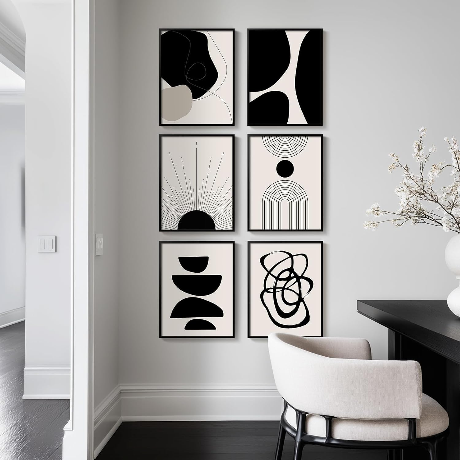 - [Framed Wall Art]: A set of 6 black white boho modern abstract wall art, each 11×14 inches. Each painting with a solid, rust-resistant, simple and stylish black frame that blends in perfectly with a variety of decor styles